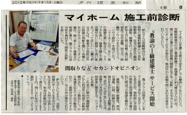 - セカンドオピニオンの建築版「間取り診断」 ~「宮崎日日新聞」のコラムの欄で紹介される~