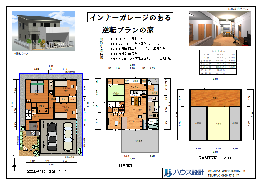 - 新築の間取り 一戸建て 住宅設計プラン(51) ~インナーガレージのある逆転プランの家~