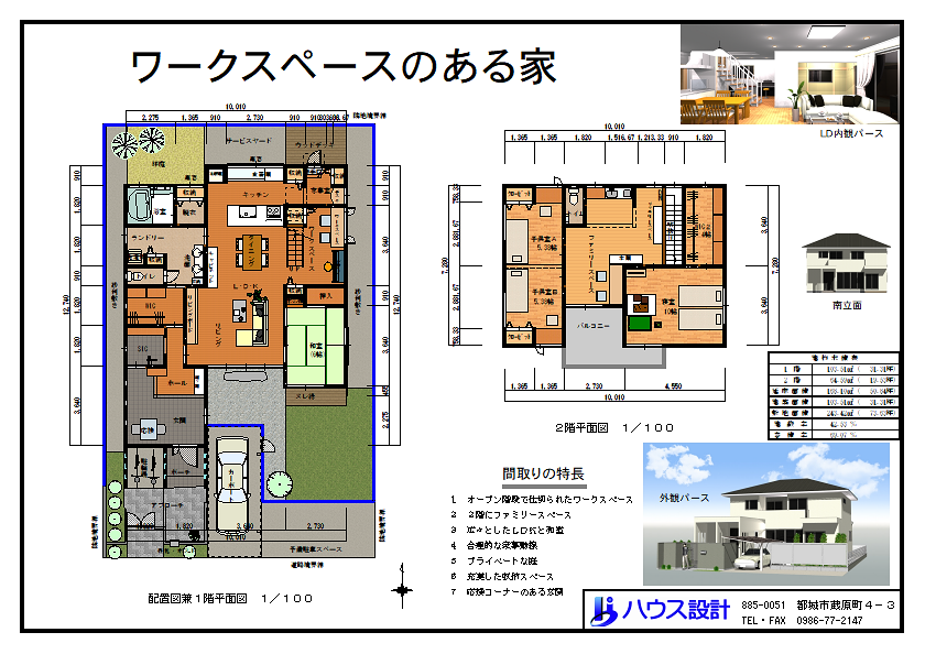 新築の間取り 一戸建て 住宅設計プラン(38) ~ワークスペースのある家~
